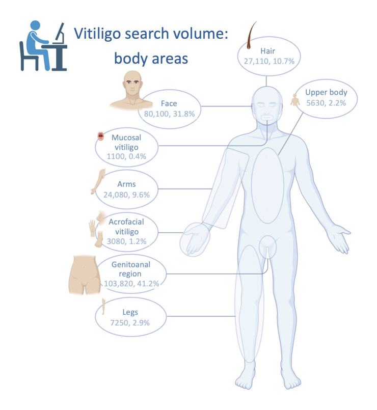 Abb. 1: Vitiligo Suchvolumen: Körperbereiche¹.